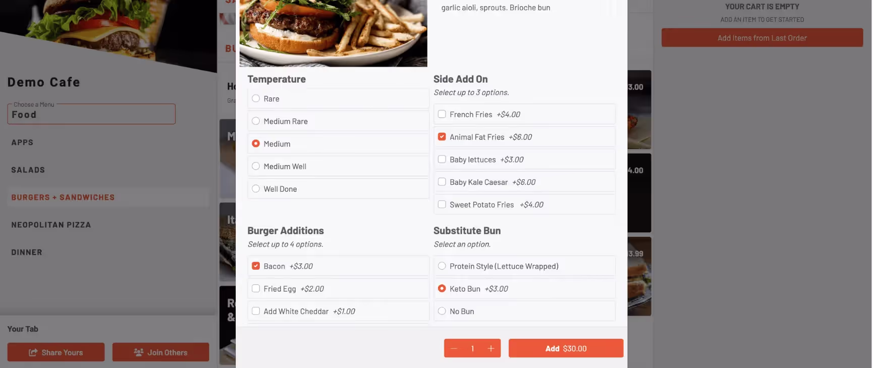 Run out of a menu item or a modifier? You can 86 menu items or update inventory levels right from the line. The item is automatically updated on the guest menu in real-time.