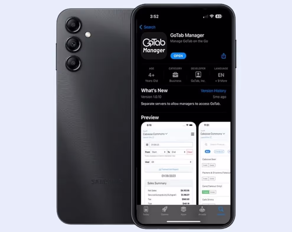 Get instant access to essential management tools with the GoTab Manager App, available for download on both the App Store and Google Play. This user-friendly app provides you with continuous access to vital information. Effortlessly manage your real-time menus, stay on top of schedules, and monitor inventory and stock levels.
