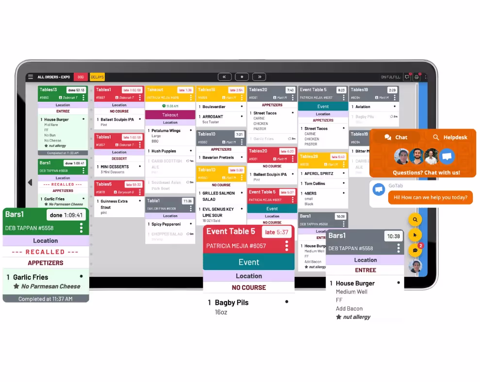 Prompt and responsive service is vital for exceptional guest experiences, and GoTab ensures seamless coordination between front-of-house and back-of-house with our Kitchen Display System (KDS) and management tools